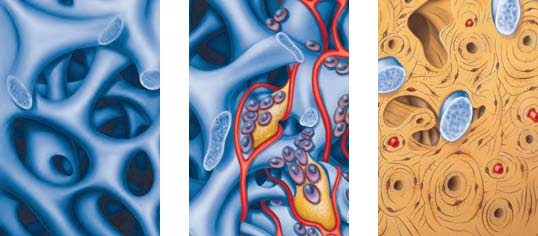Через несколько месяцев уже определенно наблюдаются мелкие клетки и капилляры, заполняющие микроструктуру материала. Процесс остеообразования длительный, в течение которого происходит постепенная медленная резорбция (рассасывание) минерала и замещение его своими собственными костными клетками.